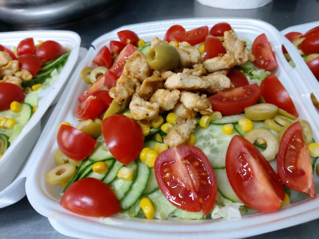 - Salată Cezar (salata; pipet de pui la grill; rosi; castraveti; porumb; masline; paine prajita si sos cezar) – 40 lei