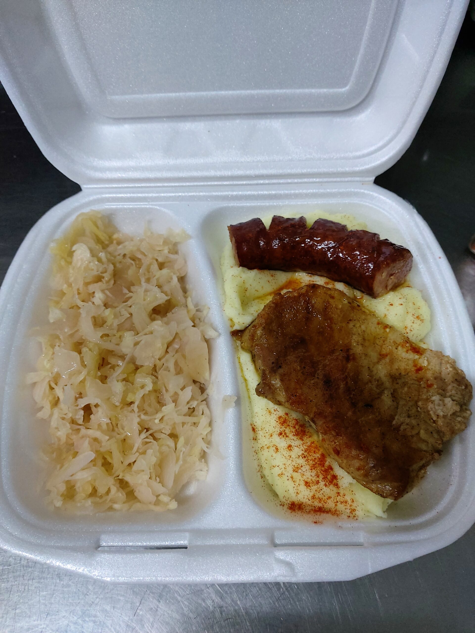 - *Deliciul Casei: Pui curry/Cartofi prăjiți/varza/sweet chili/sos usturoi – 40 lei